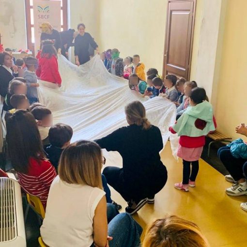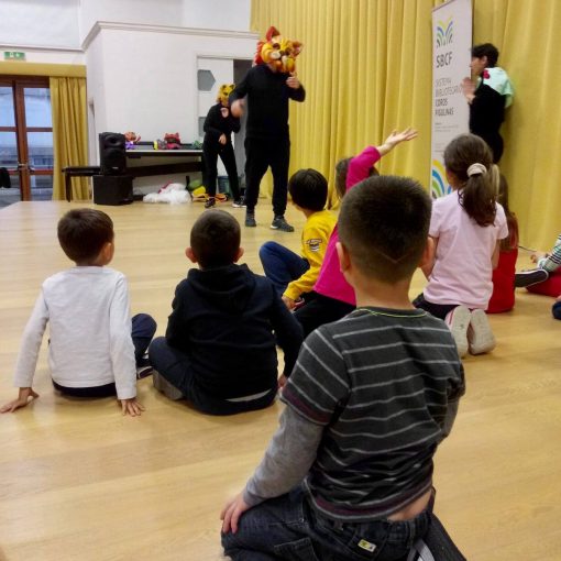 La compagnia teatrale La Botte e il Cilindro ha coinvolto i piccoli partecipanti attraverso un laboratorio teatrale ispirato alla favola sarda “Il Gatto Mammone”, con una performance che ha visto protagonisti i bambini stessi: non più semplici spettatori, ma veri e propri attori capaci di reinterpretare momenti e personaggi della fiaba messa in scena durante l’evento.
