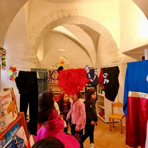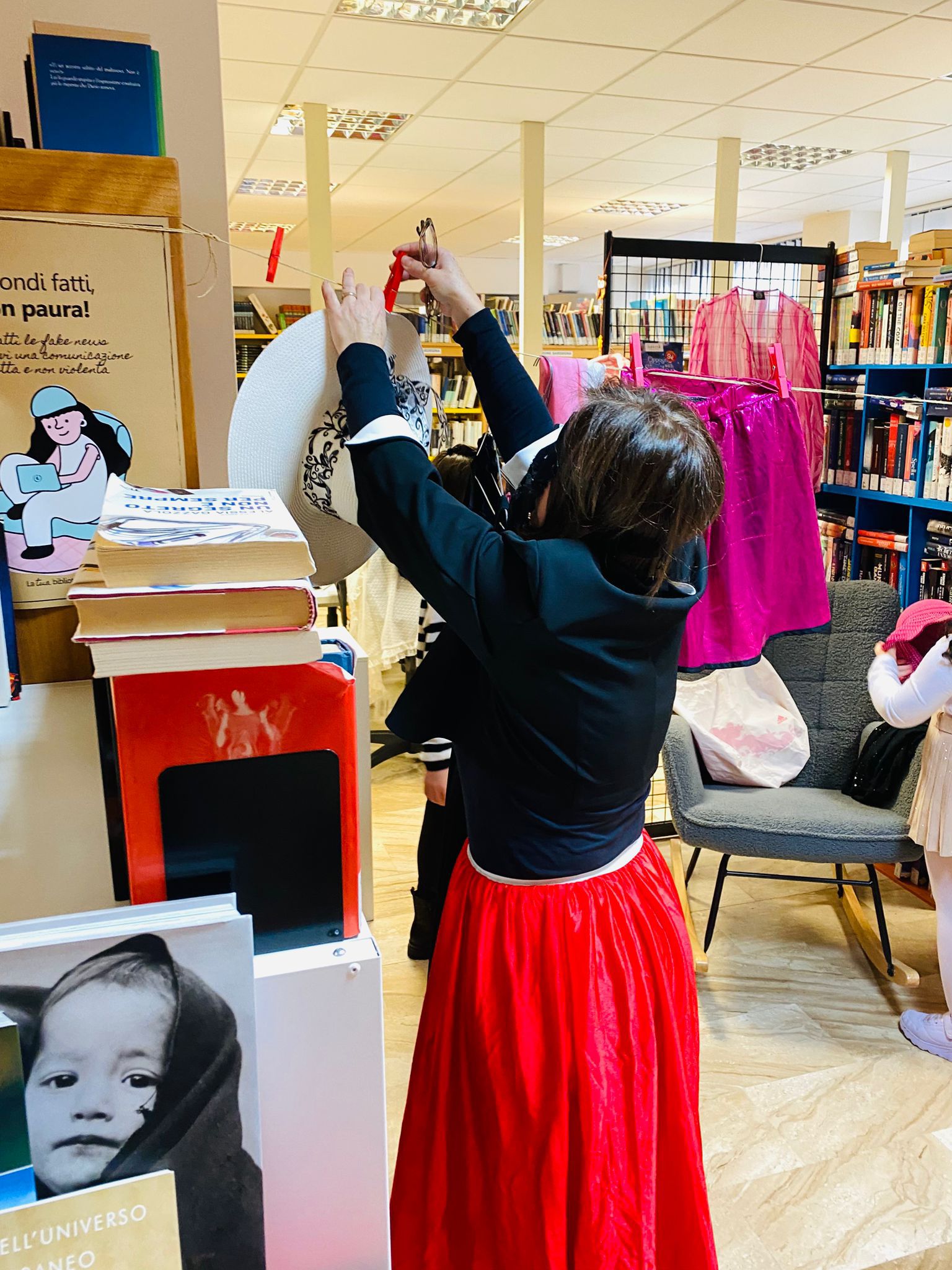 I nostri iscritti hanno portato in biblioteca costumi, cappelli stravaganti, accessori eccentrici e travestimenti di ogni tipo, pronti a scambiarli e a reinventarli: in poche ore, gli scaffali si sono trasformati in un vivace guardaroba condiviso, dove ogni oggetto trovava una nuova storia e un nuovo proprietario.